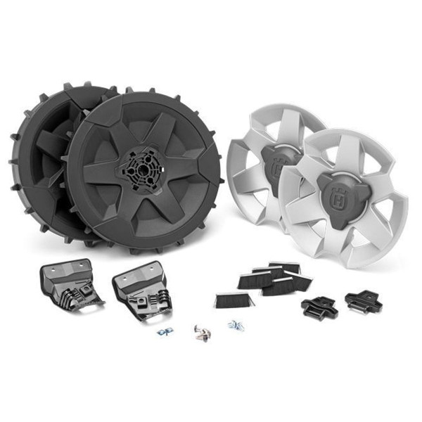 Améliorez la traction et la tenue en pente de votre robot tondeuse HUSQVARNA 310 ou 315. Ces roues au profil spécialement étudié garantissent une tenue exceptionnelle; et évitent le glissement de la machine lors de travail en pente. Les performances dans les pentes augmentent de presque 5% au bord de la pelouse; cette dernière est préservée et la tonte optimisée.