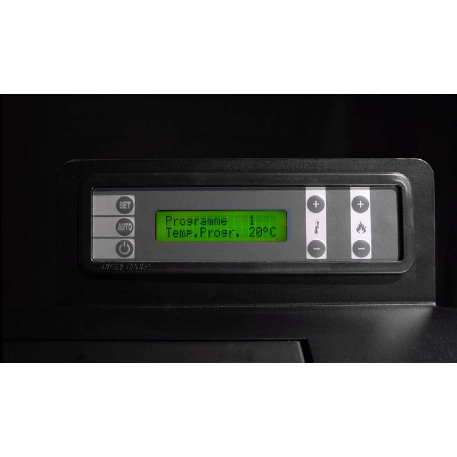 Ce poêle à pellets étanche nouvelle génération est doté d’un tableau de commande simple d’utilisation situé au dessus qui permet de programmer votre chauffage sur 7 jours. Vous pourrez par exemple utiliser un programme type :